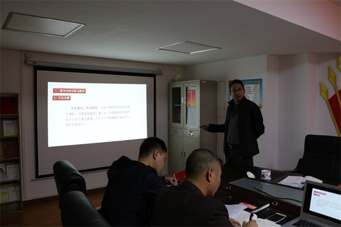 會議首先通過以黨支部委員及黨員同志分別宣讀學習文件形式來進行,以新穎的方式傳達宣傳十九大精神。支委委員及黨員同志通過宣讀十九大重要文件不僅加深了學習,讓黨員同志們記憶猶新,同時也讓主題黨日活動更加生動活潑。