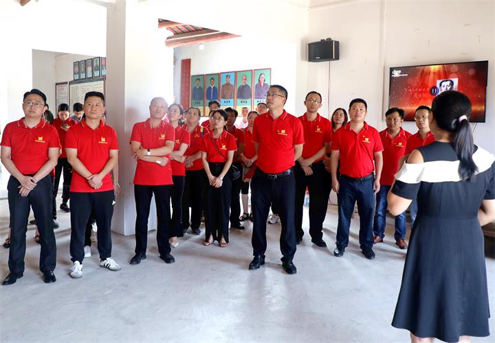 在黃士韜故居前,公司黨支部副書記蘭乾雄帶領(lǐng)黨員重溫入黨誓詞。全體黨員面向黨旗,緊握右拳,莊嚴宣誓。