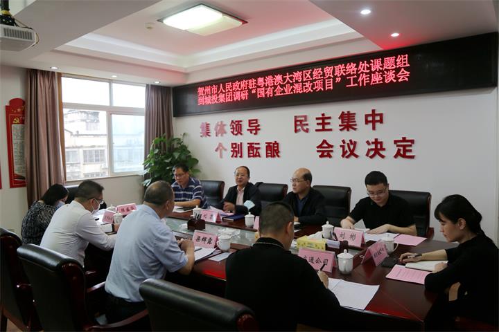 賀州市人民政府駐粵港澳大灣區(qū)經(jīng)貿(mào)聯(lián)絡(luò)處課題組到城投集團開展調(diào)研2022-05-10